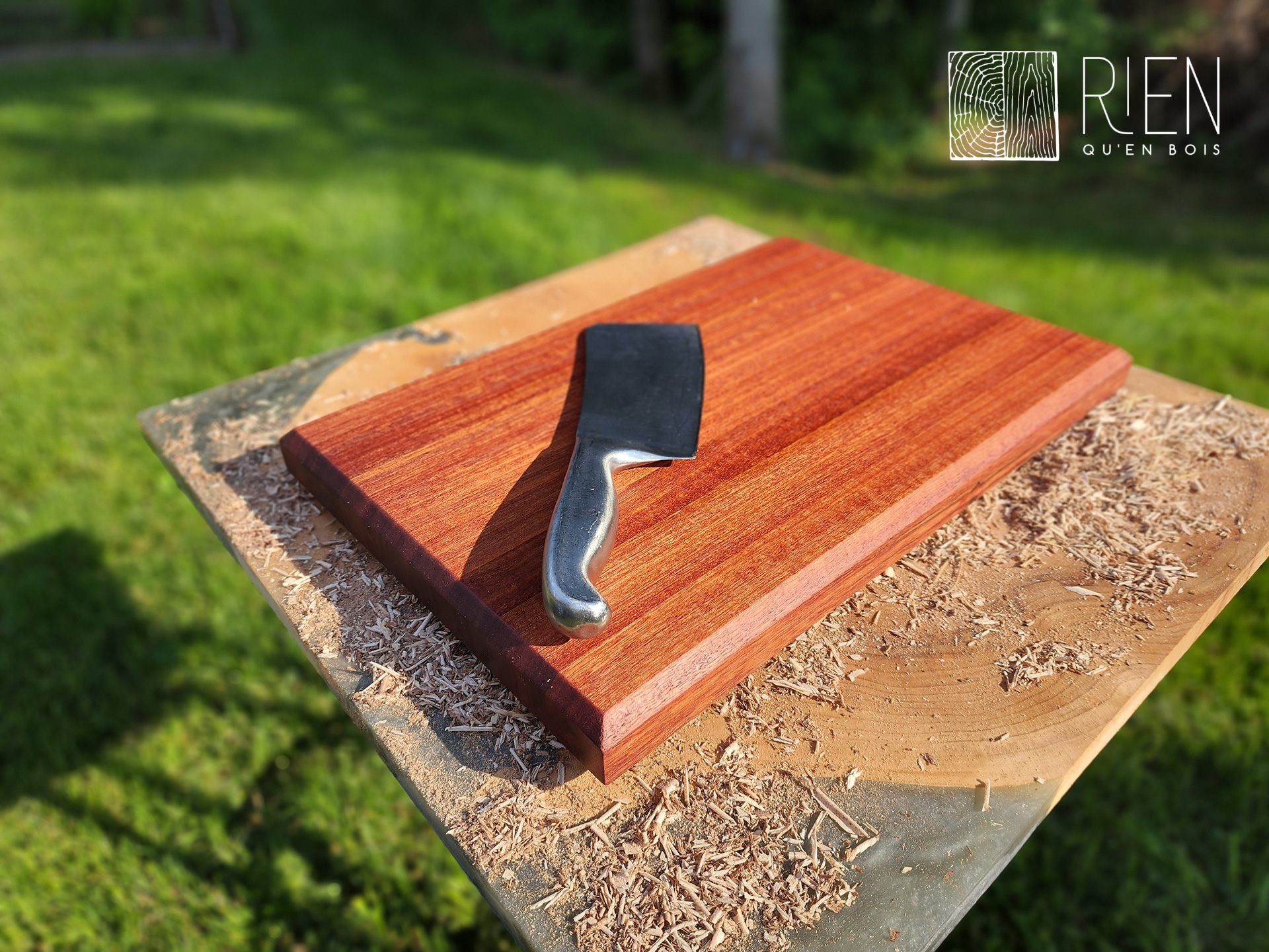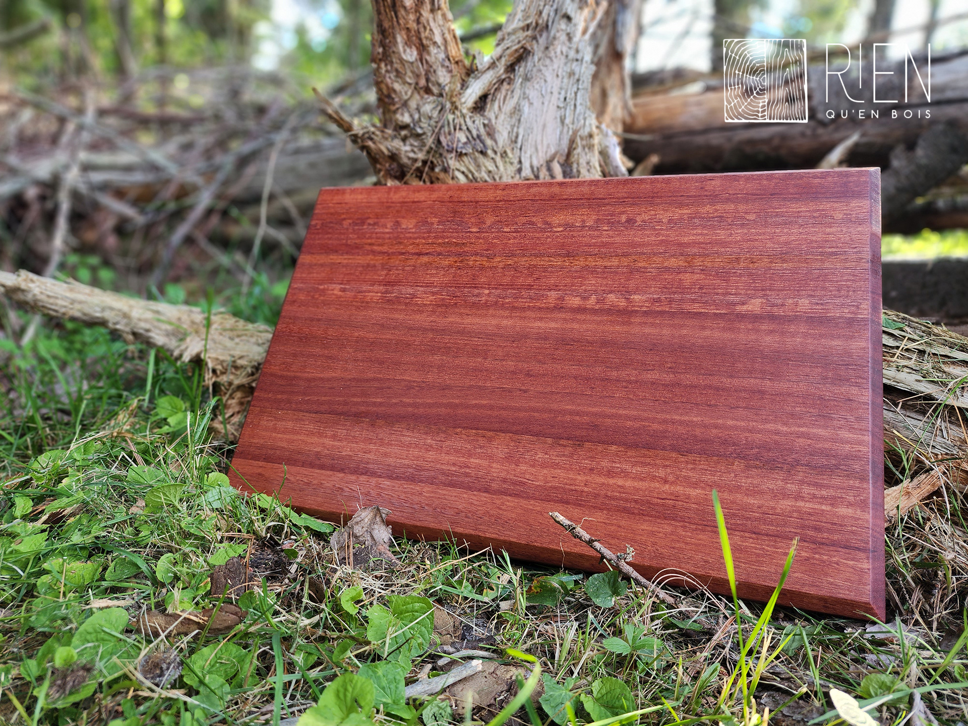Planche en bois debout, en noyer noir, mesurant 15 3/4 po x 12 po x 1 3/8 po.