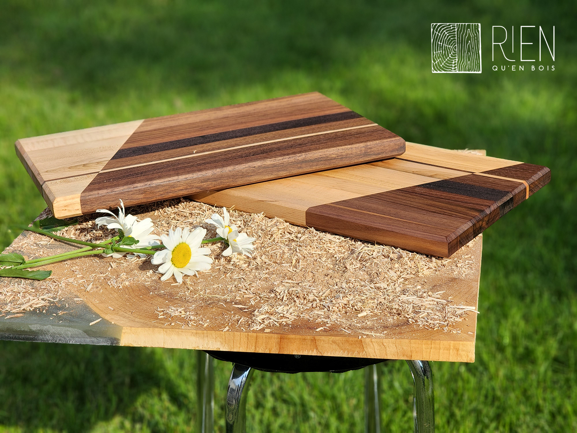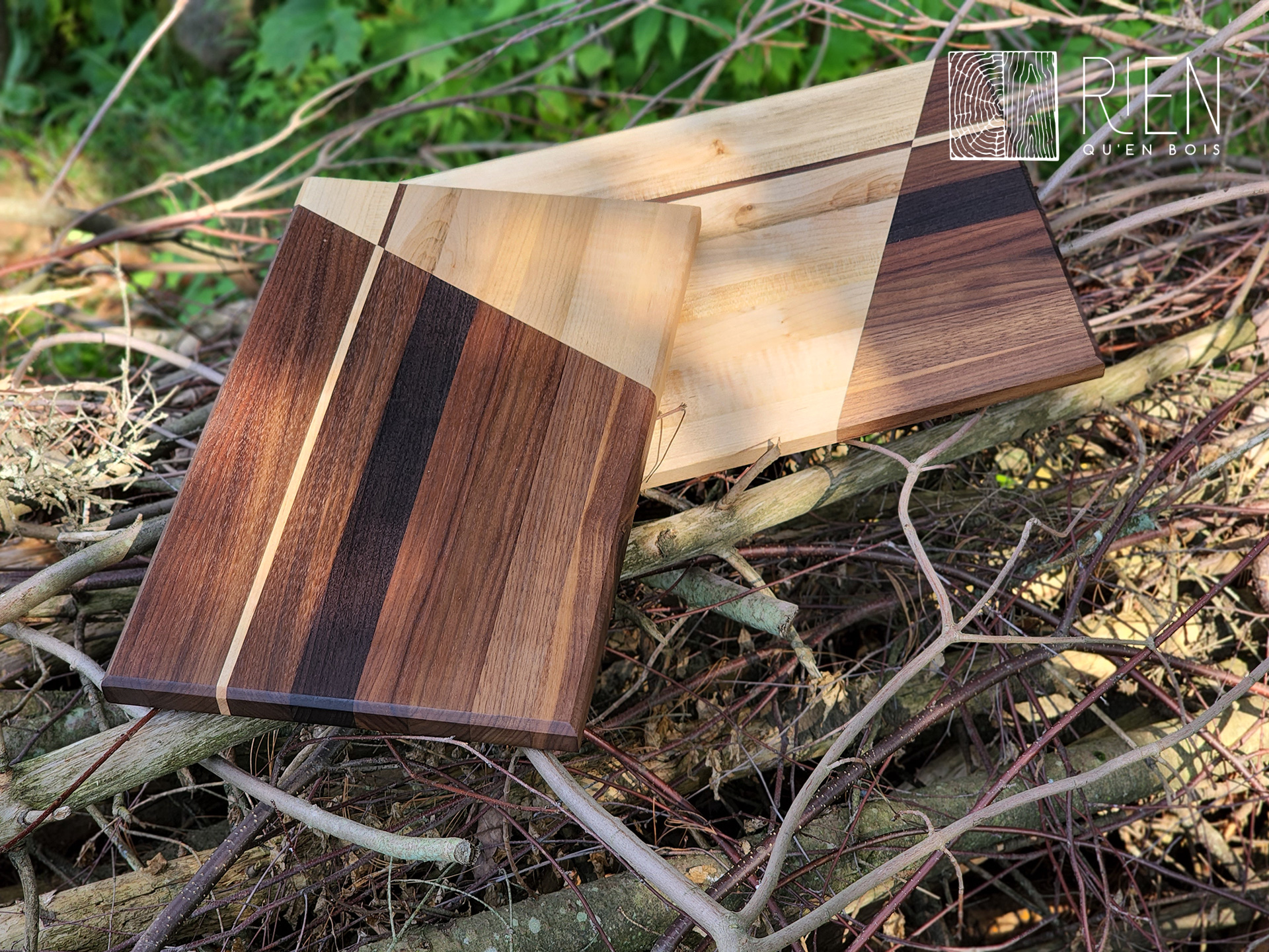 Planche en bois debout, en érable et noyer noir, mesurant 16 po x 12 po x 2 po.